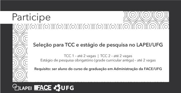 Quer fazer seu TCC ou o estágio de pesquisa obrigatório no Laboratório de Pesquisa em Empreendedorismo e Inovação da UFG? A seleção estagiários e alunos em fase de TCC estão abertas até dia 15 de março.