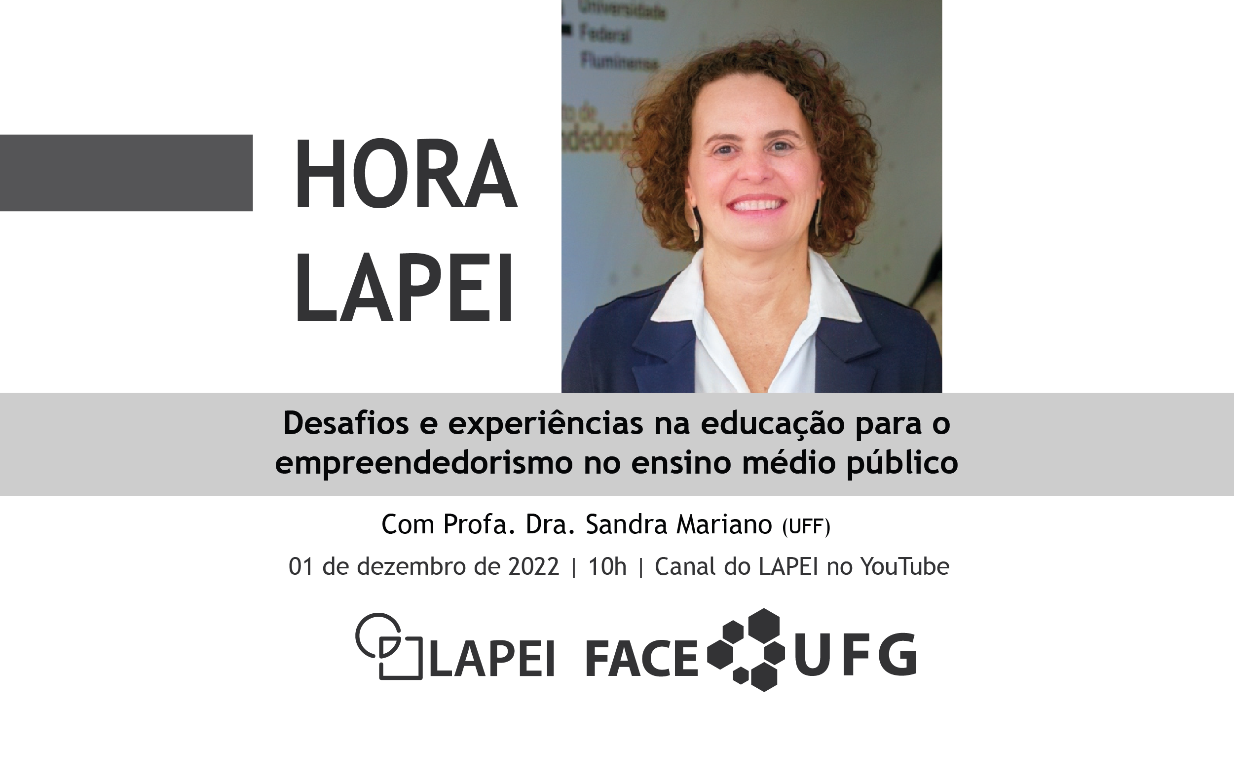 A 21ª edição da Hora Lapei terá como convidada a Profa. Dra. Sandra Mariano, da Universidade Federal Fluminense (UFF). Nossa convidada falará sobre os “Desafios e experiências na educação para o empreendedorismo no ensino médio público”. O evento será transmitido em nosso canal no Youtube. |