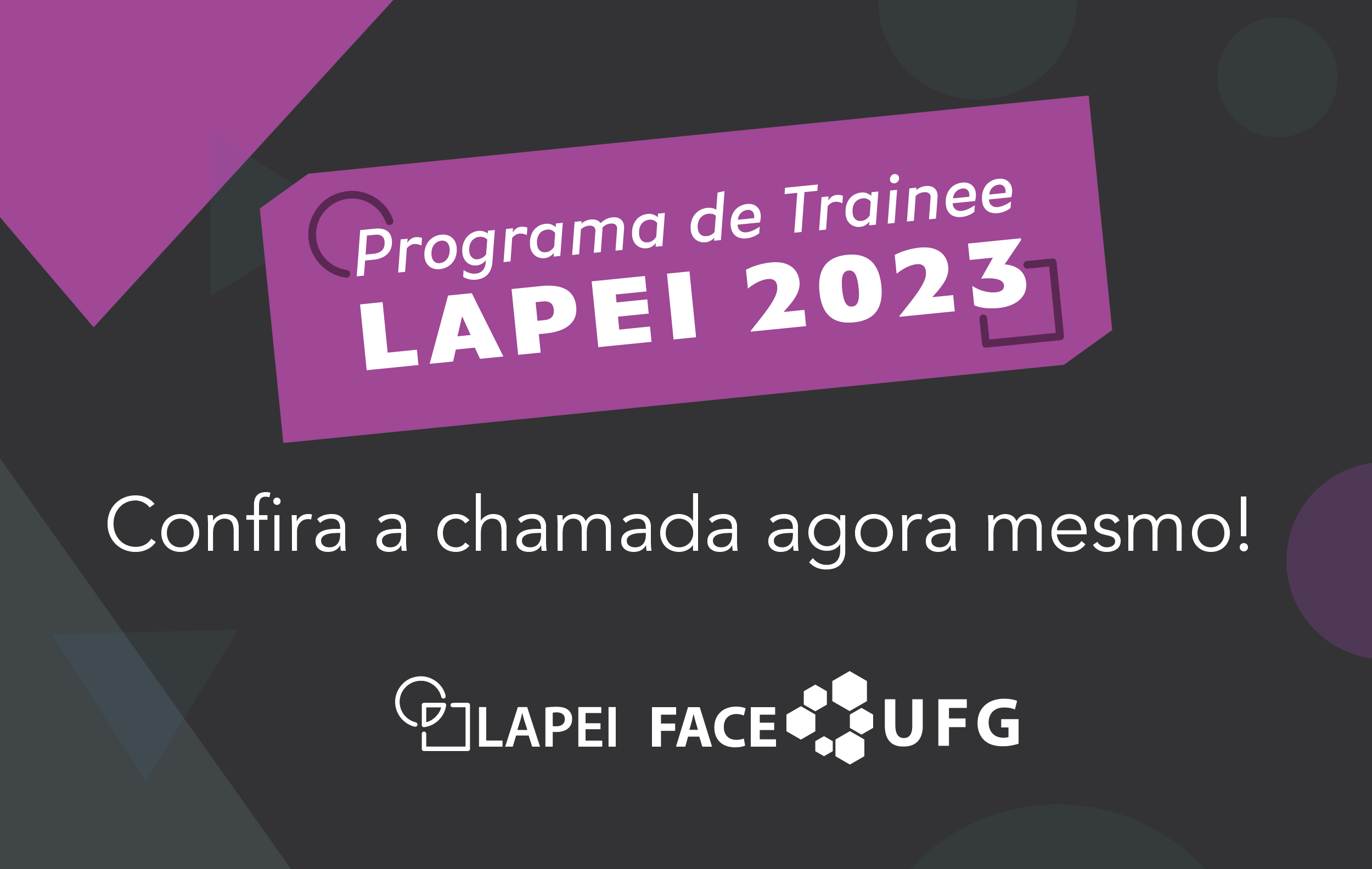 Já está disponível a Chamada Simplificada para o Programa de Trainee Lapei 2023. O programa tem o intuito de contribuir com a formação acadêmica e profissional dos alunos de graduação da Universidade Federal de Goiás, por meio de treinamentos, orientações e atuação focadas no desenvolvimento de habilidades técnicas em pesquisa e de habilidades comportamentais.